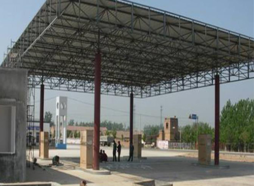 1、加油站網架高空散裝法。高空散裝法又分為全支架法,部分活動支架法和懸挑法。這種方法適用于在起重困難的情況下大規模的拼裝支架,使用這種方法安裝加油站網架時要注意標高和軸線的位置,確定合理的拼裝順序。